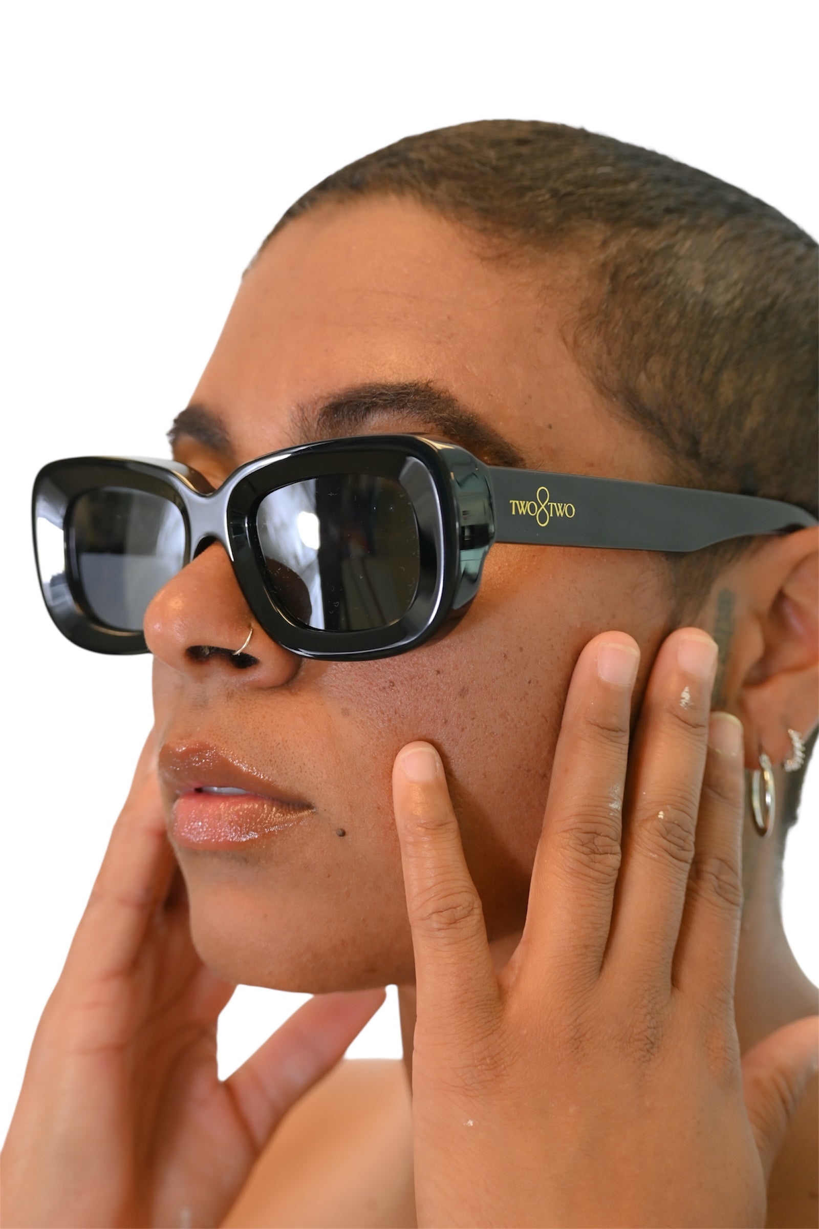 The Midnight Frames are fully matte black with UV400 lenses — minimal, magnetic, and impossible to ignore. The engraved Two8Two arm detail keeps it quietly flexy. For those who make noise without saying a word.