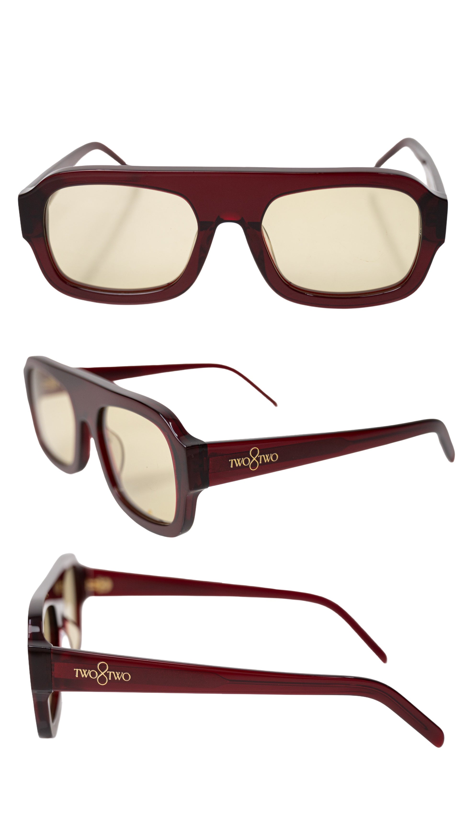 The Wine Frames bring a deep burgundy finish with contrast yellow UV400 lenses — warm, luxe, and built to stand out. Featuring polarized protection and a signature Two8Two logo etched into the arm. Smooth. Confident. You.