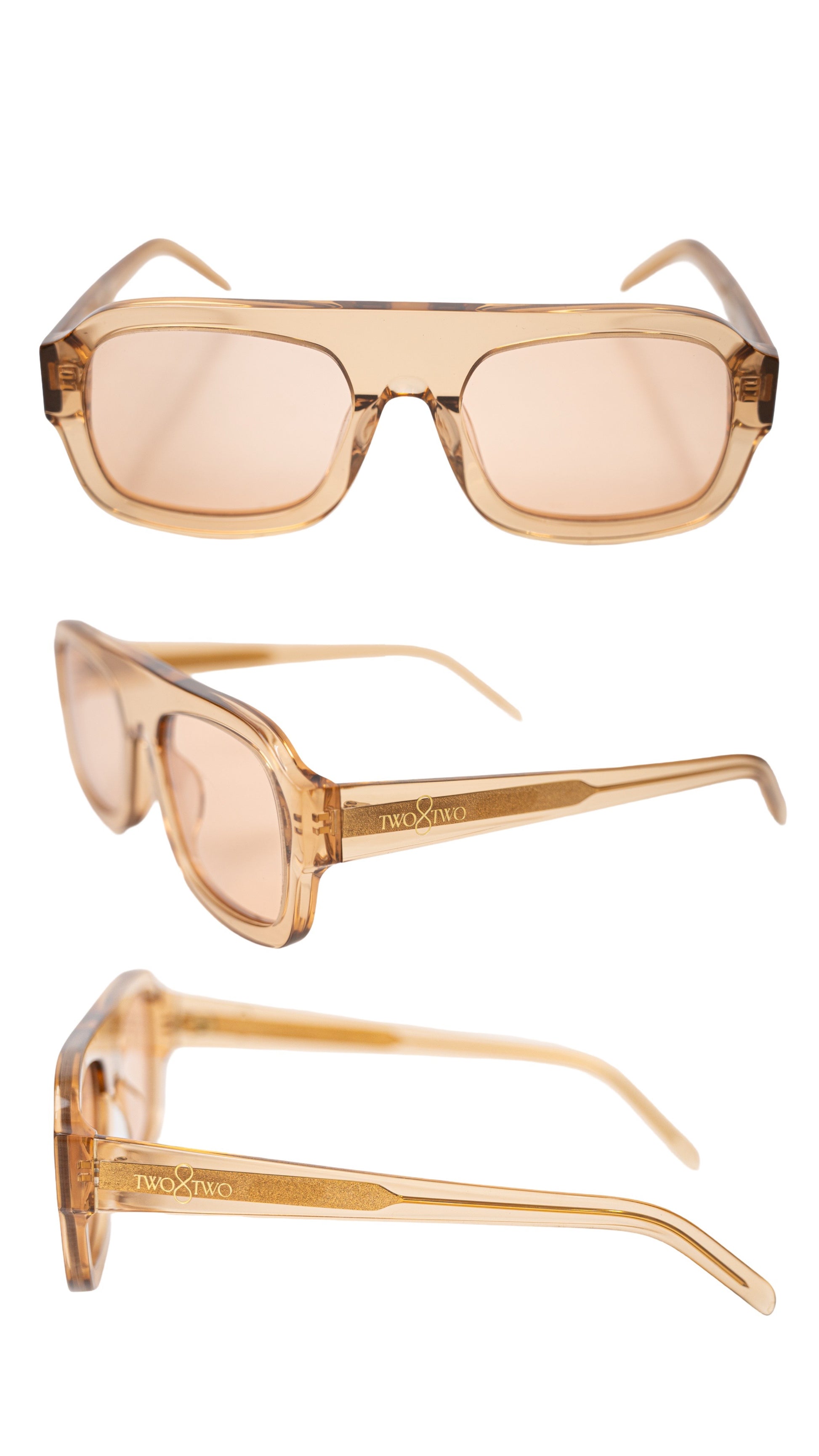 Our Sunrise Frames are handcrafted with a golden acrylic finish, polarized UV400 lenses, and a cleanly engraved Two8Two logo on the arm — because details matter. Simple yet bold — just like you.